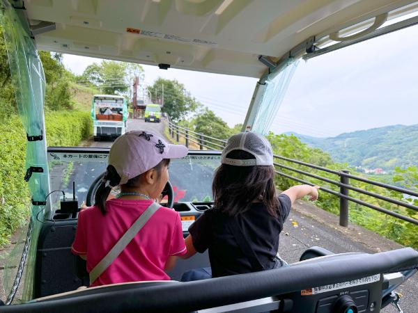 冒険ステーションから、てんとう虫のモノレールやコシロ・カート、コシロちゃんバスなどで移動して、てっぺんとりでへ!