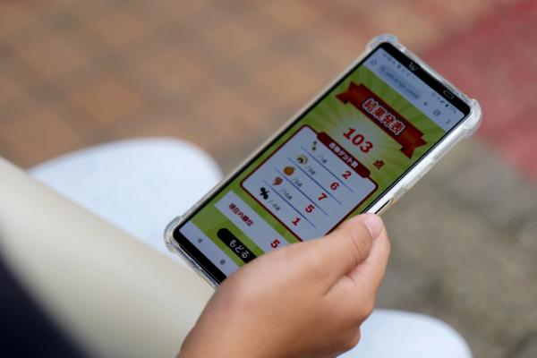 スマホ上で右に左に動き回るてんとう虫を、時間内に素早くタップして捕まえます。
