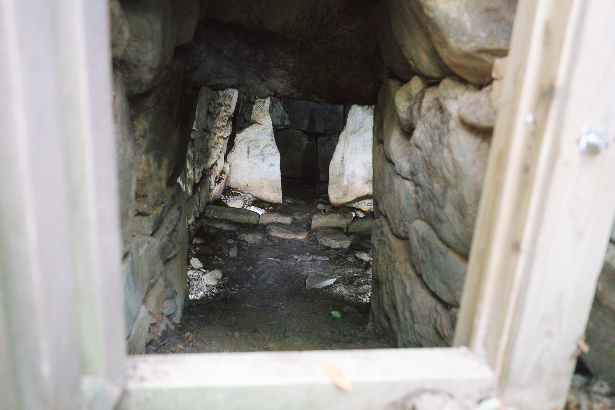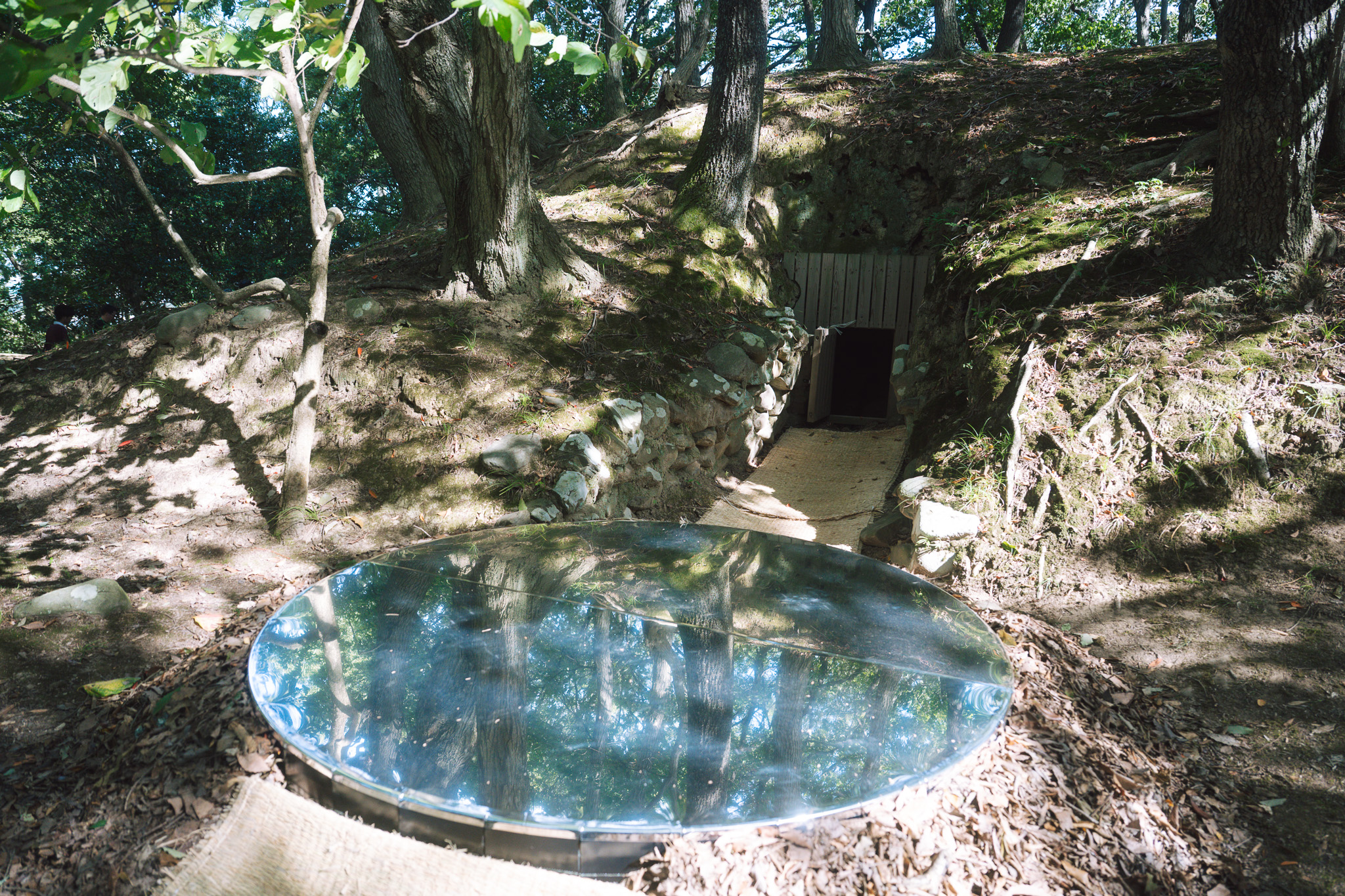 鏡の先に続く古墳からは、神秘的なサウンドが流れています。