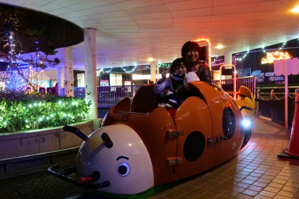キラッキラにライトアップされたてんとう虫のモノレールや、入り口から頂上まで直通のコシロカートをぜひ利用してみて。