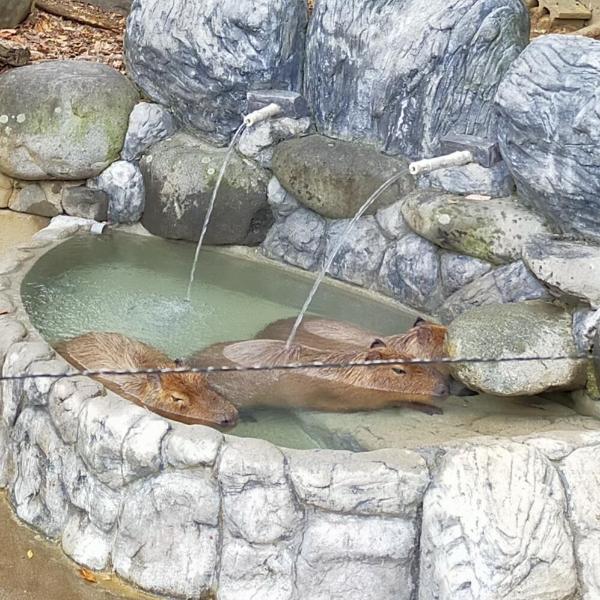 とべ動物園の冬の風物詩「カピバラの打たせ湯」は見逃せません!お湯に浸かって、のんびりリラックス!